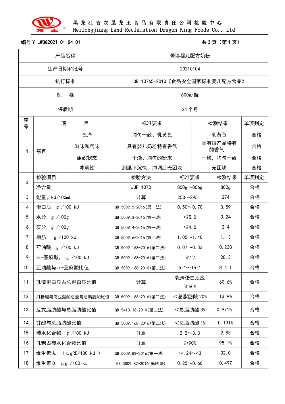 2021年(nián)1月(yuè)份菁博嬰兒(ér)配方奶粉800克