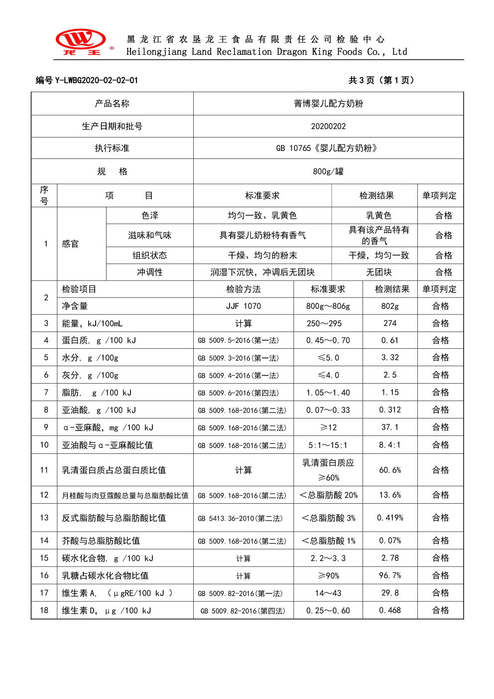 2020年(nián)02月(yuè)份菁博嬰兒(ér)配方奶粉800克