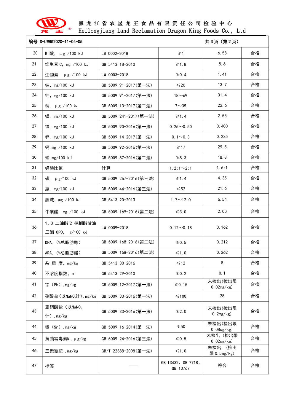 2020年(nián)11月(yuè)份龍貝樂(yuè)較大(dà)嬰兒(ér)配方奶粉800克
