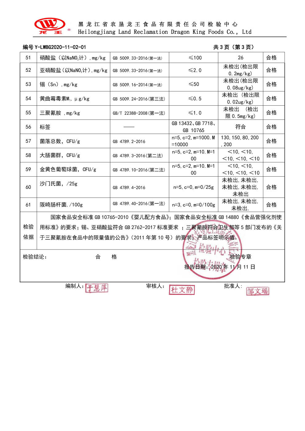 2020年(nián)11月(yuè)份菁博嬰兒(ér)配方奶粉100克