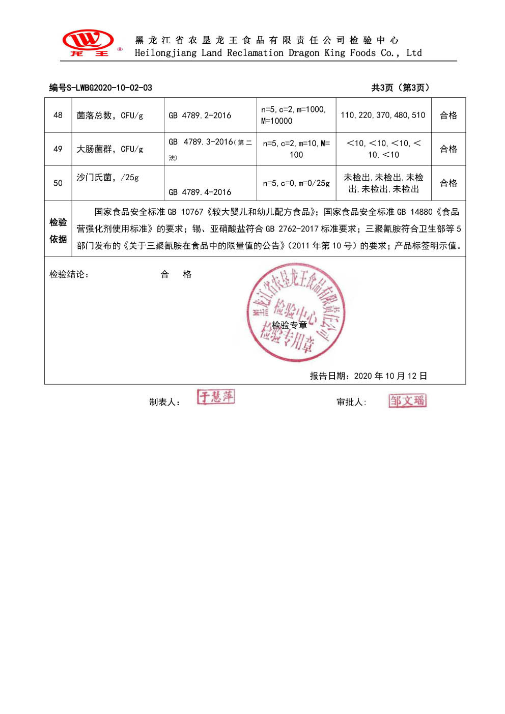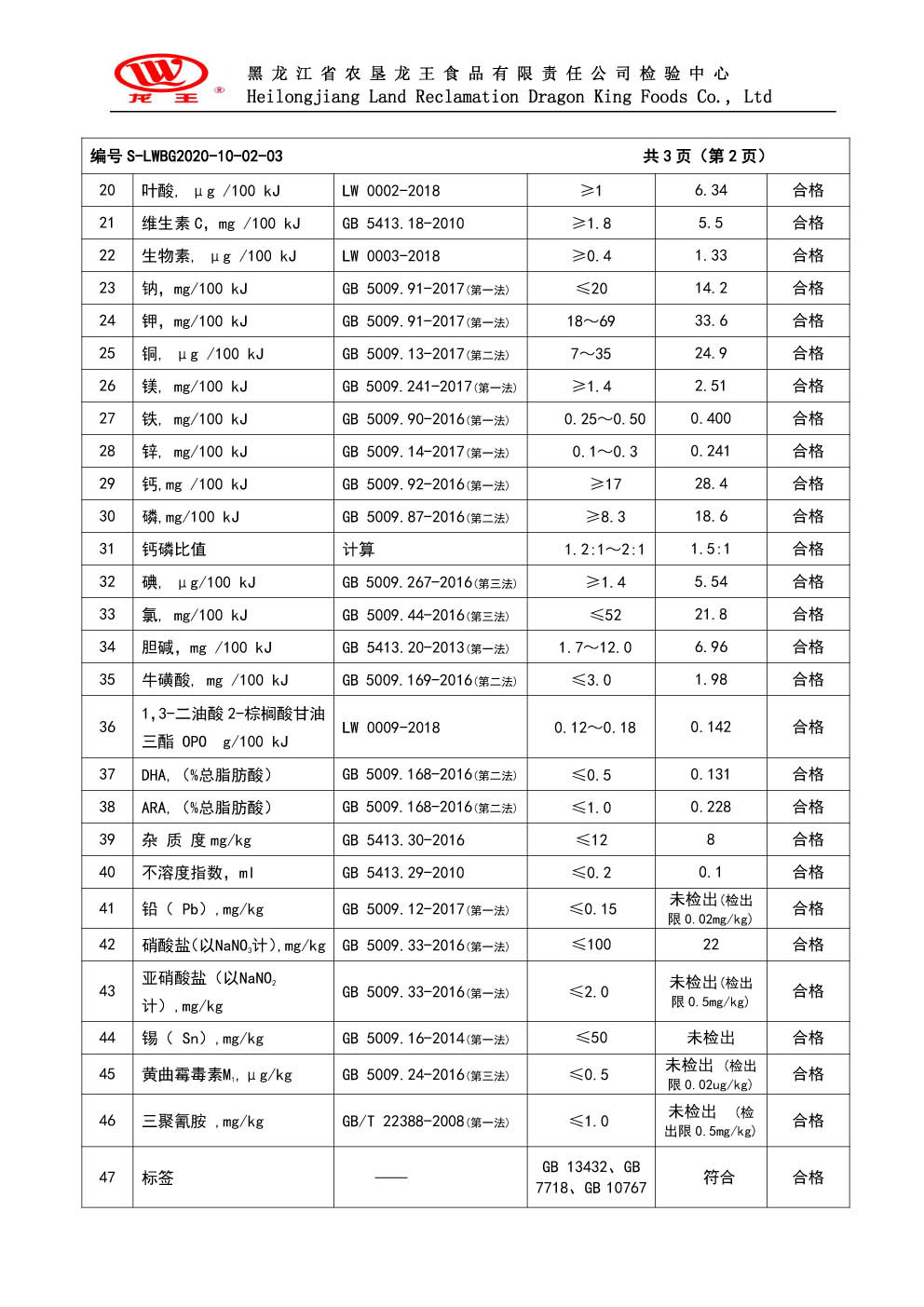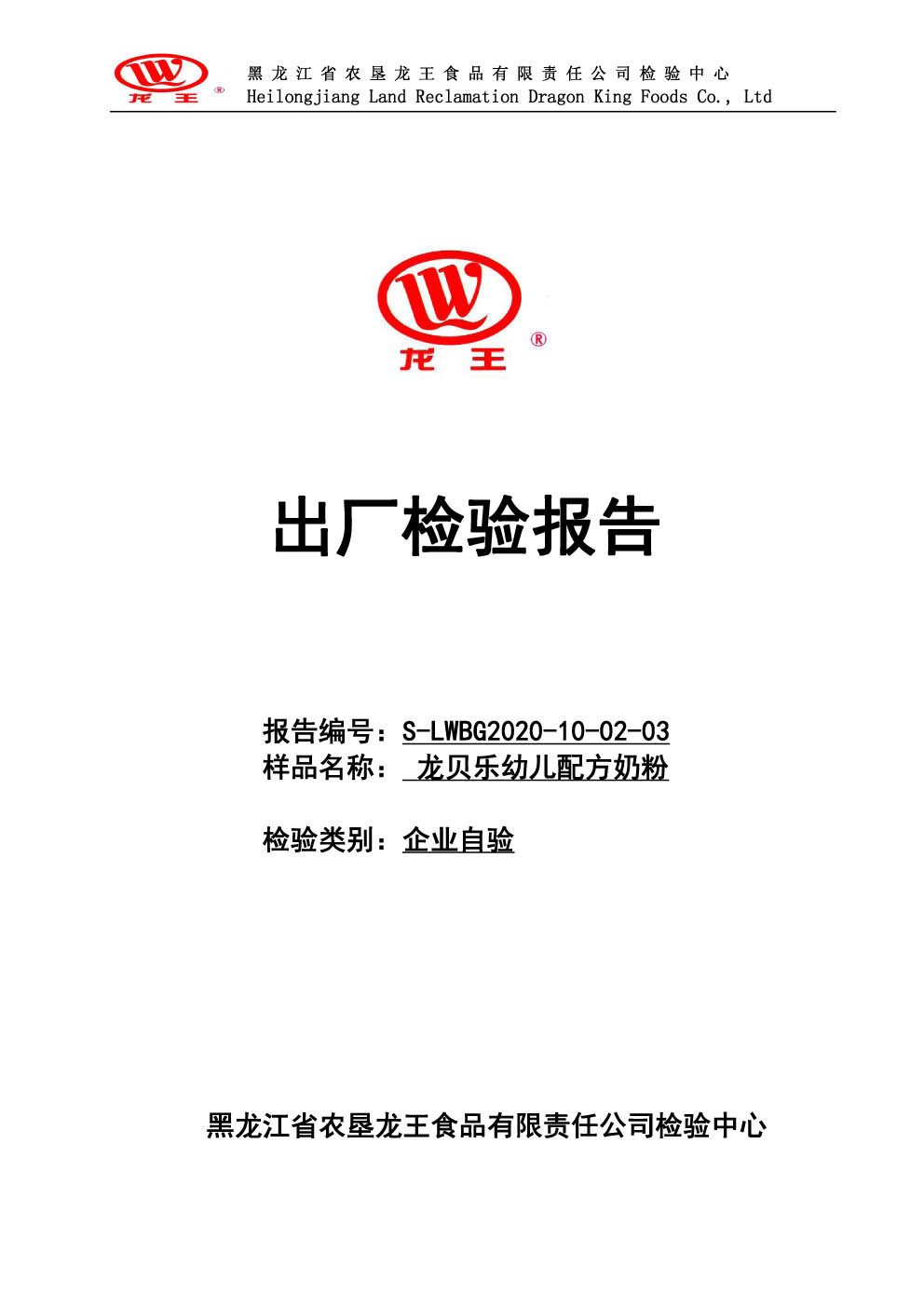 2020年(nián)10月(yuè)份龍貝樂(yuè)幼兒(ér)配方奶粉800g