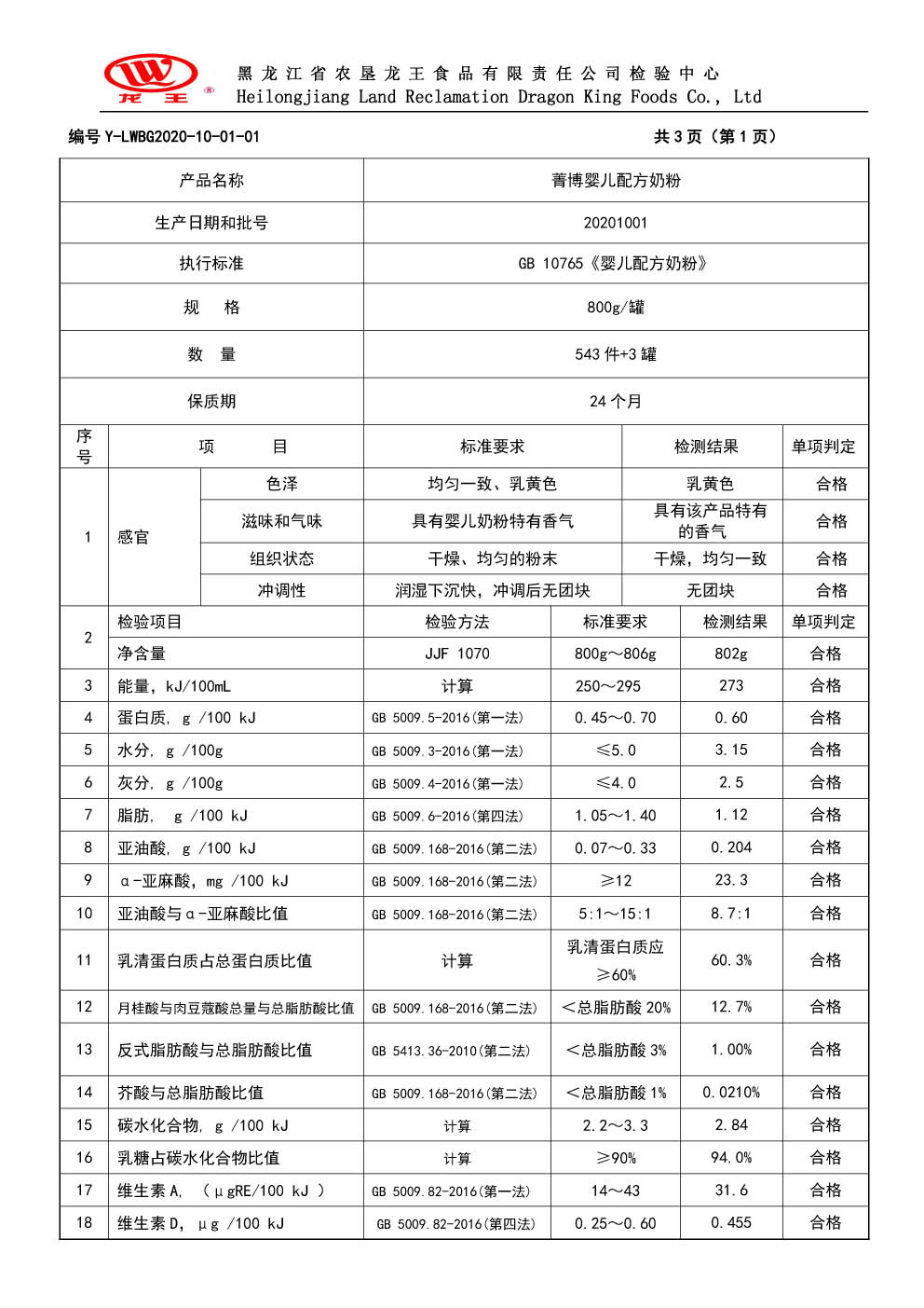 2020年(nián)10月(yuè)菁博嬰兒(ér)配方奶粉800克