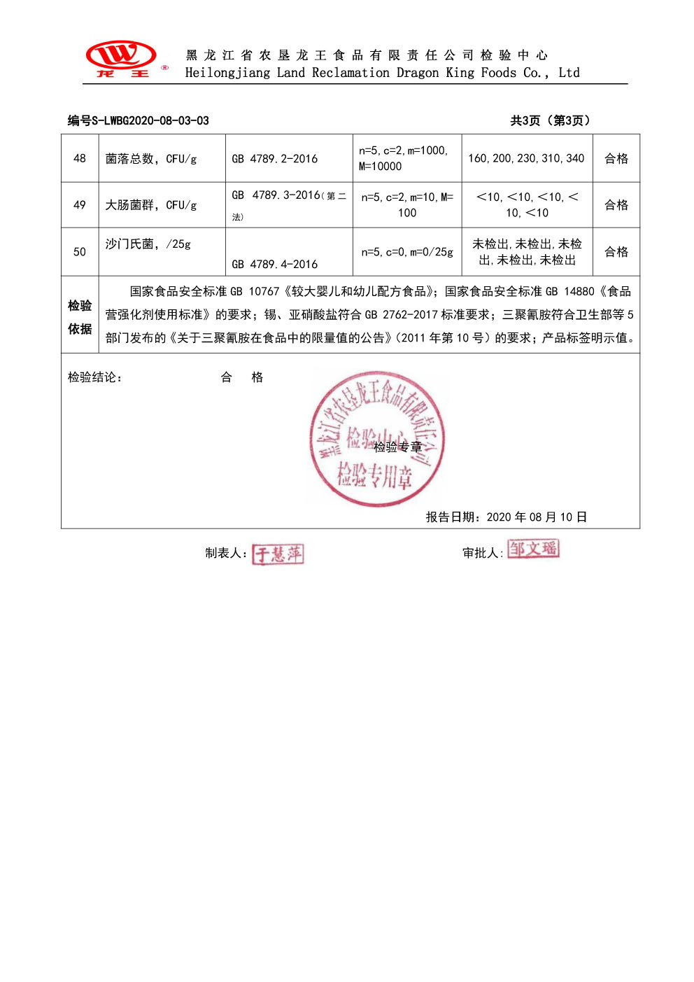 2020年(nián)8月(yuè)份龍貝樂(yuè)幼兒(ér)配方奶粉800g
