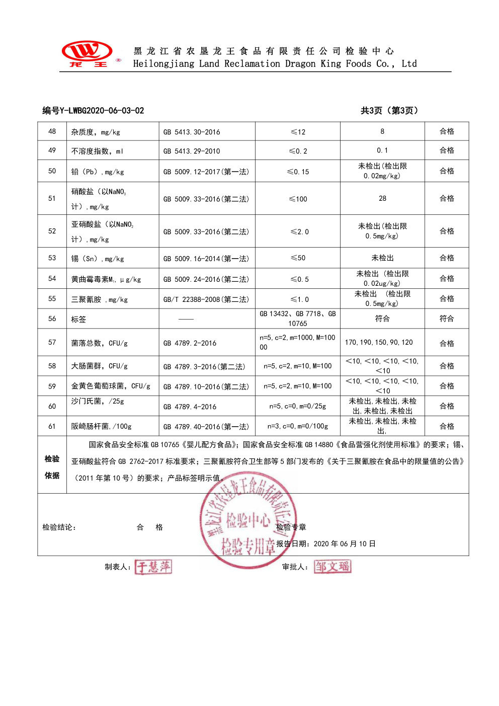 2020年(nián)6月(yuè)份龍貝樂(yuè)嬰兒(ér)配方奶粉400克