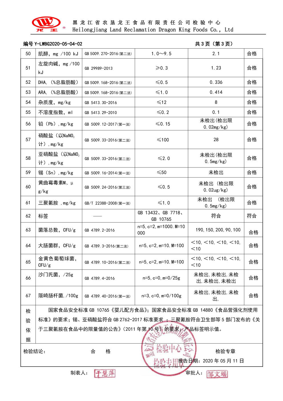 2020年(nián)5月(yuè)份優加恩嬰兒(ér)配方奶粉100克