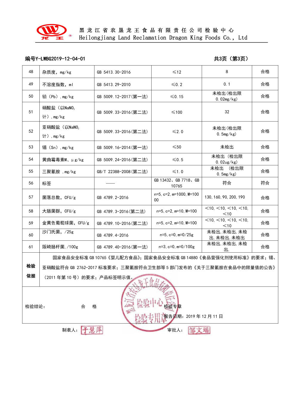 2019年(nián)12月(yuè)份龍貝樂(yuè)嬰兒(ér)配方奶粉800克