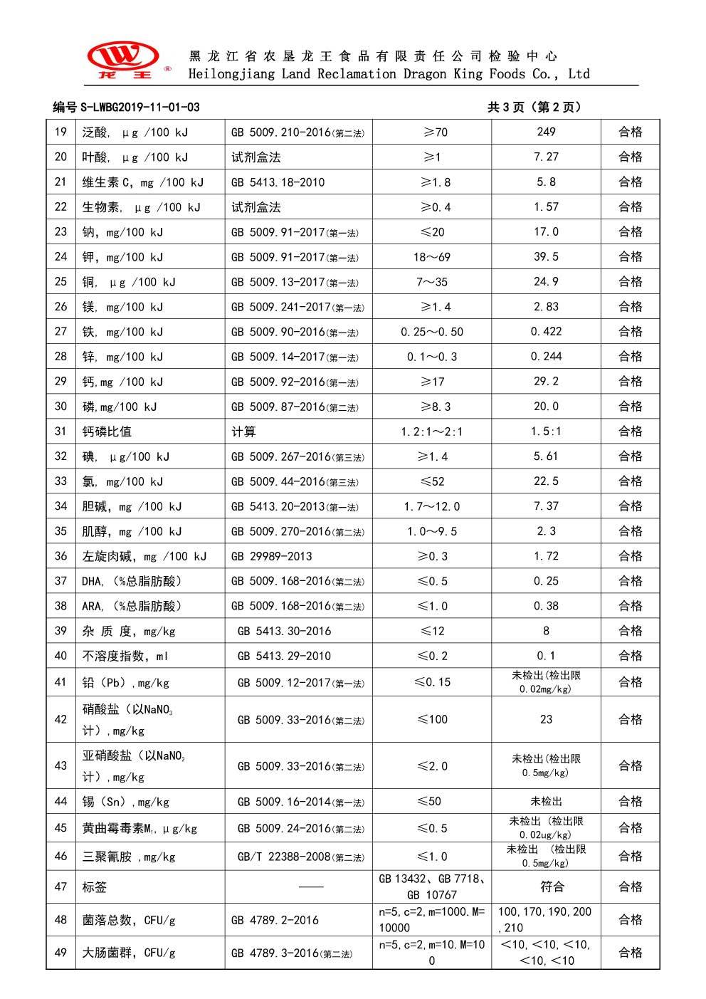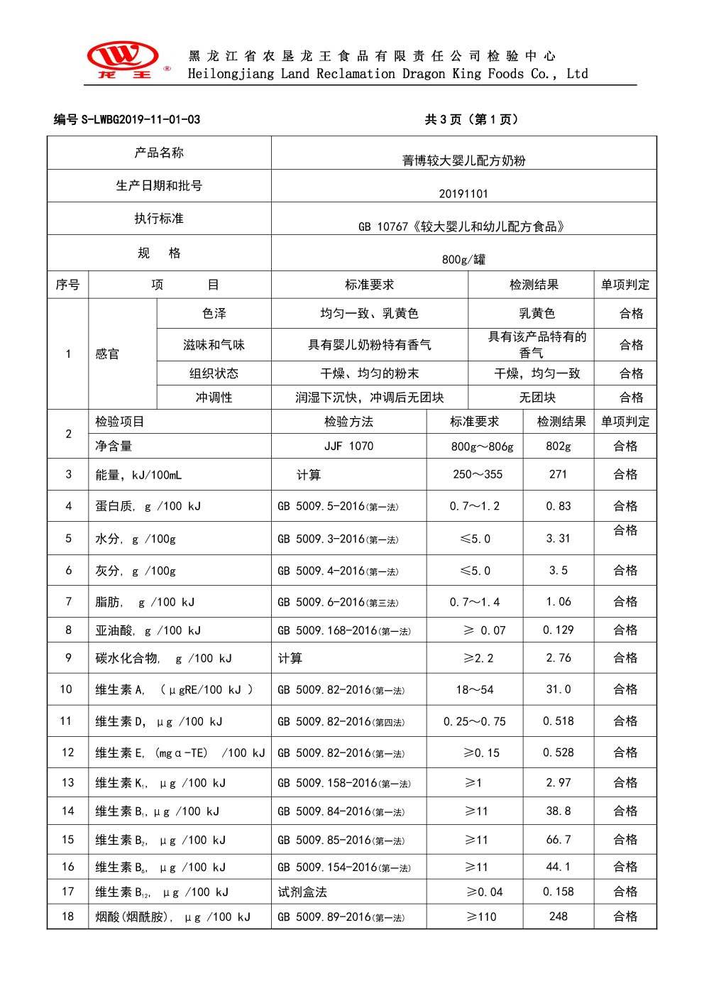 2019年(nián)11月(yuè)份菁博較大(dà)嬰兒(ér)配方奶粉800克