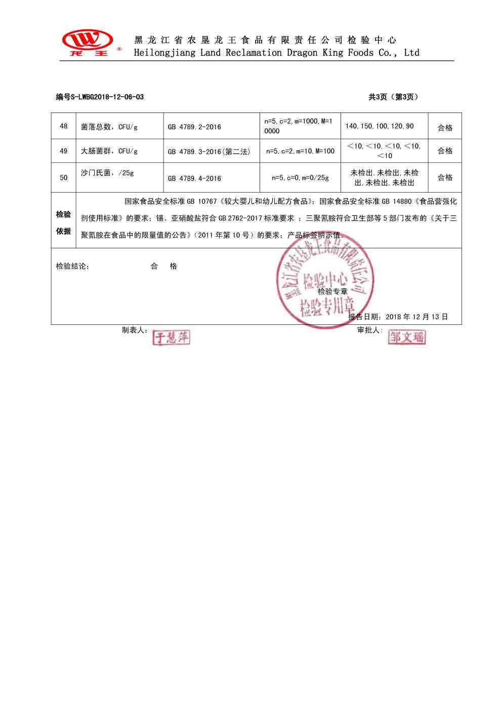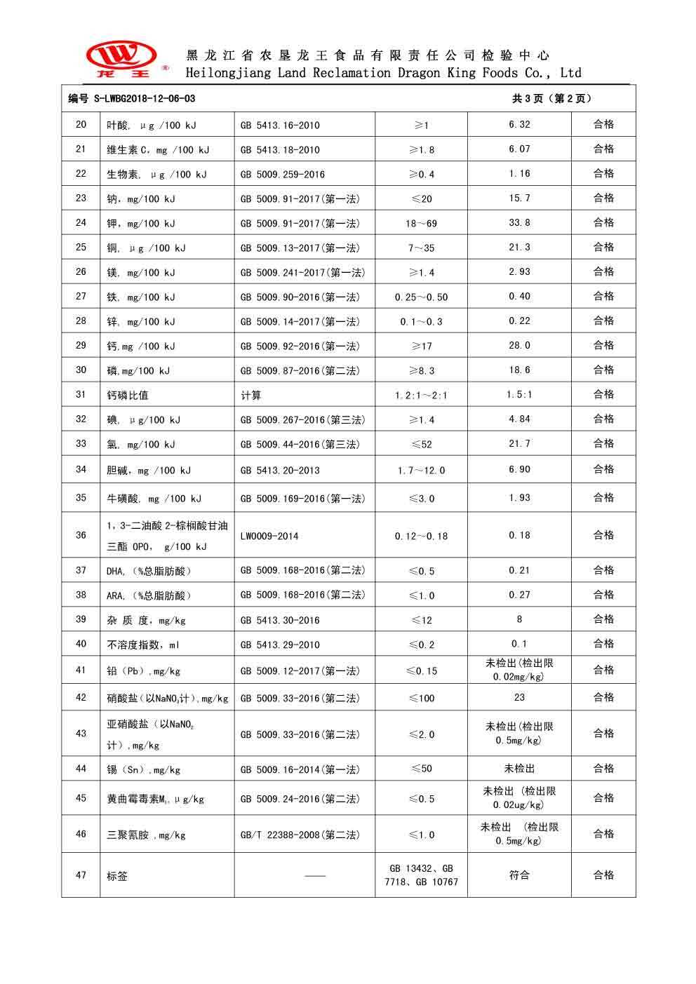 2018年(nián)12月(yuè)份龍貝樂(yuè)較大(dà)嬰兒(ér)配方奶粉800克