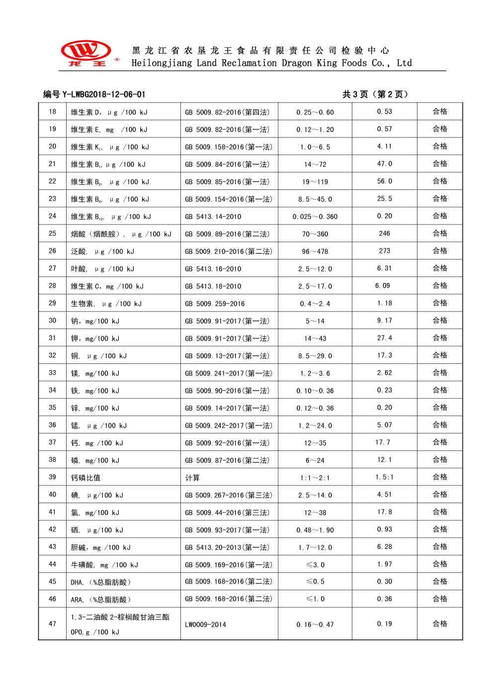 2018年(nián)12月(yuè)份龍貝樂(yuè)嬰兒(ér)配方奶粉800克
