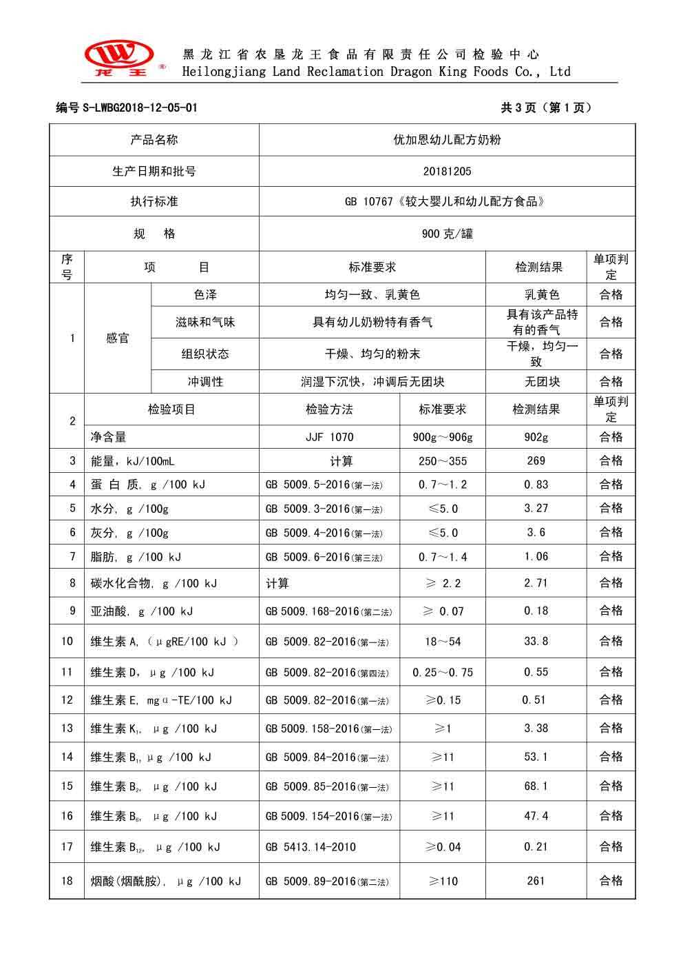 2018年(nián)12月(yuè)份優加恩幼兒(ér)配方奶粉900克