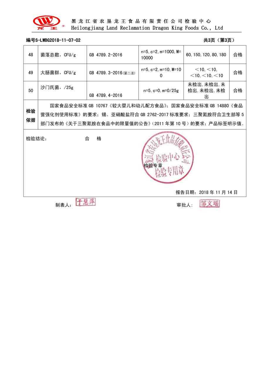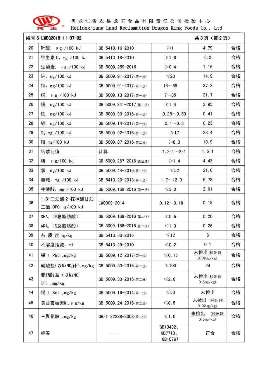 2018年(nián)11月(yuè)份龍貝樂(yuè)幼兒(ér)配方奶粉800克