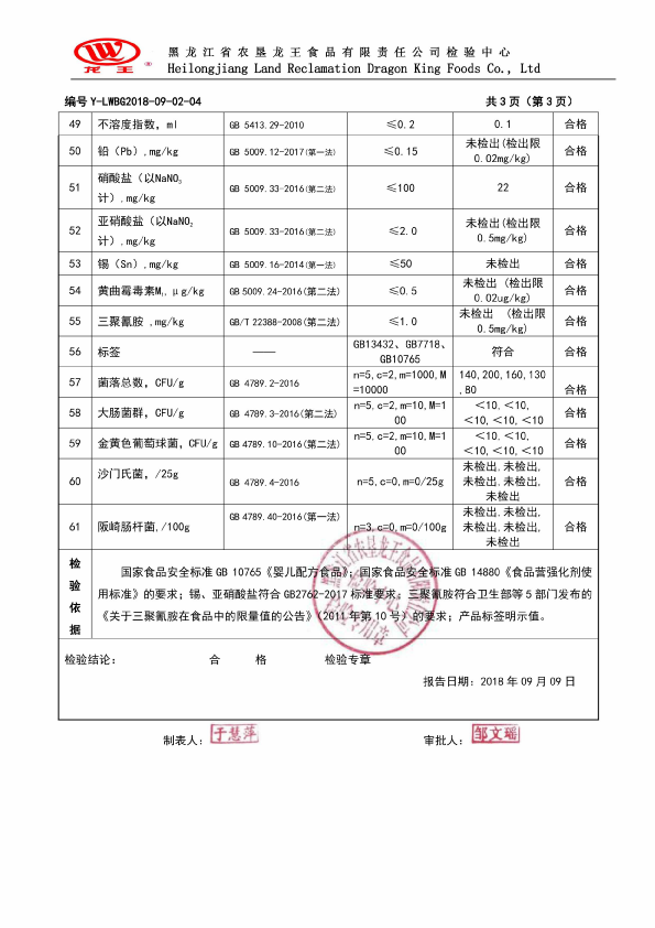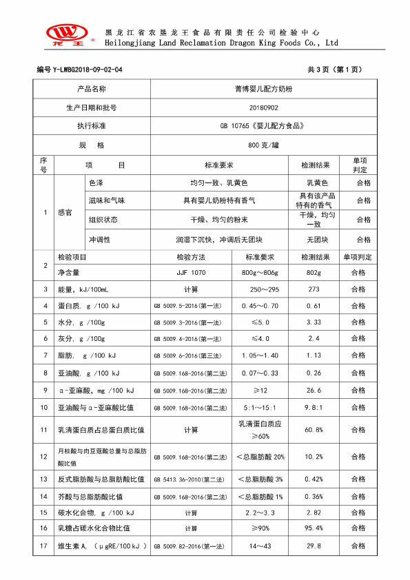 2018年(nián)9月(yuè)份菁博嬰兒(ér)配方奶粉800克