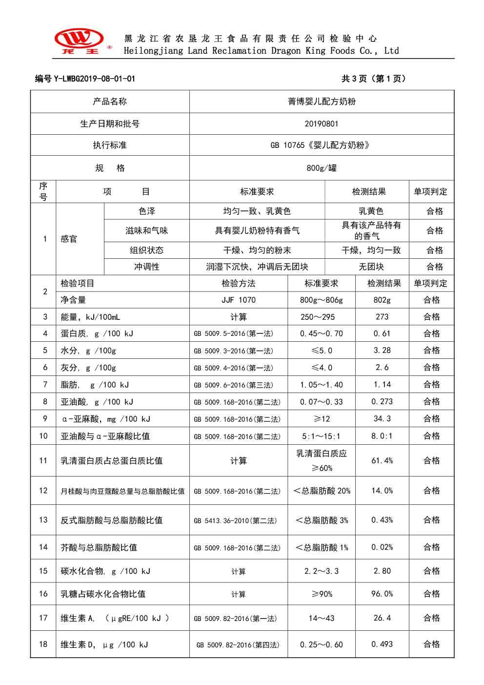 2019年(nián)8月(yuè)份菁博嬰兒(ér)配方奶粉800克