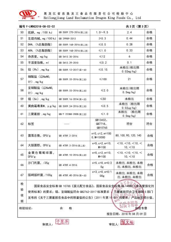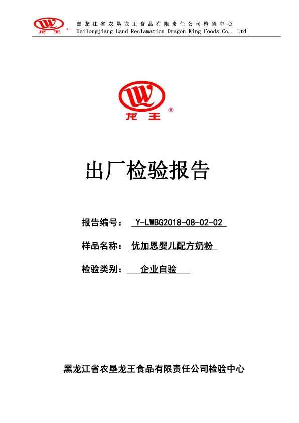 2018年(nián)8月(yuè)份優加恩嬰兒(ér)配方奶粉100克