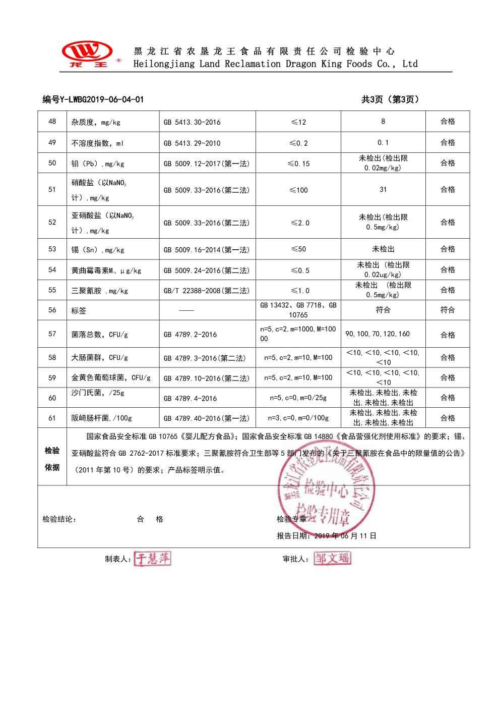 2019年(nián)6月(yuè)份龍貝樂(yuè)嬰兒(ér)配方奶粉400克