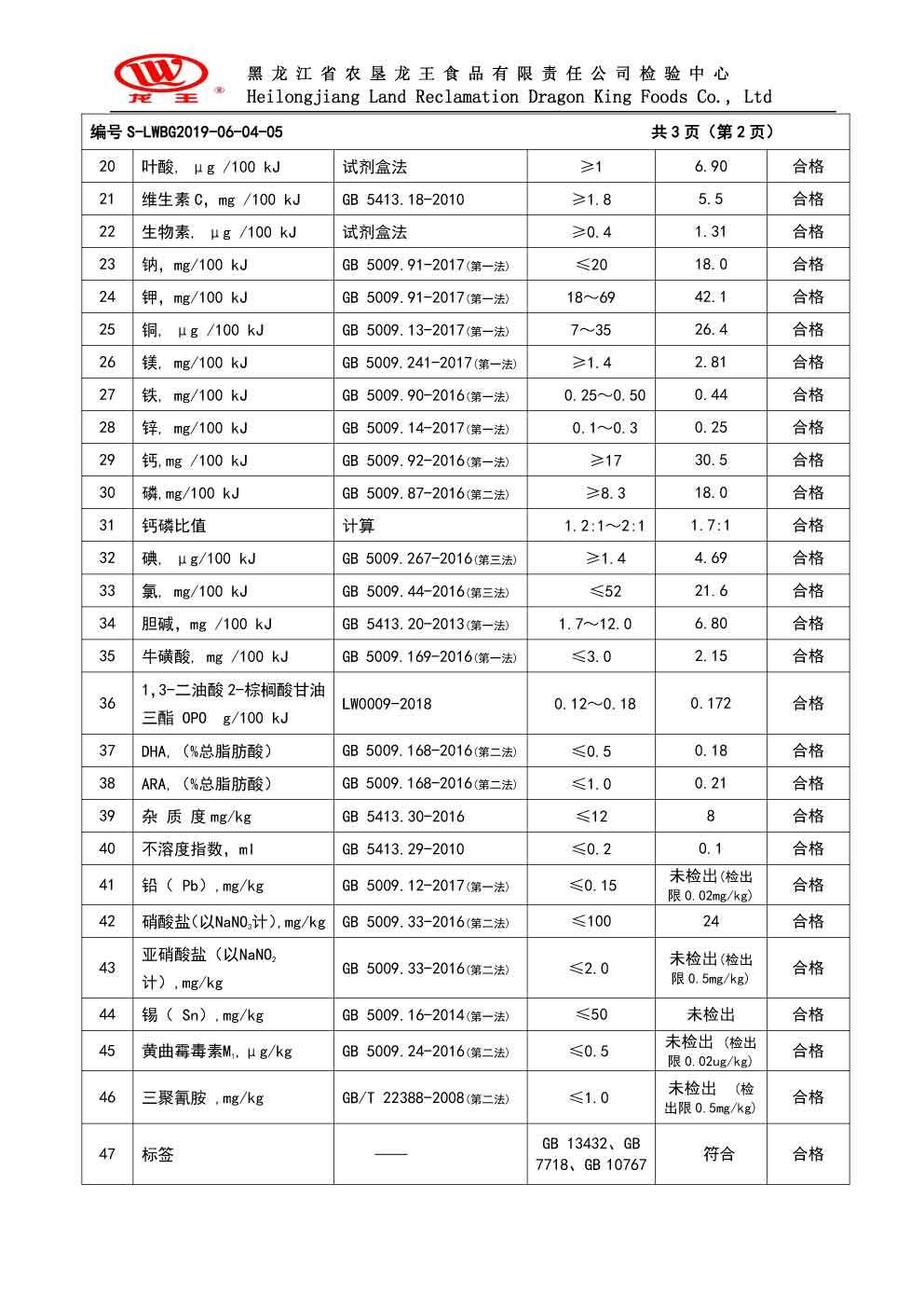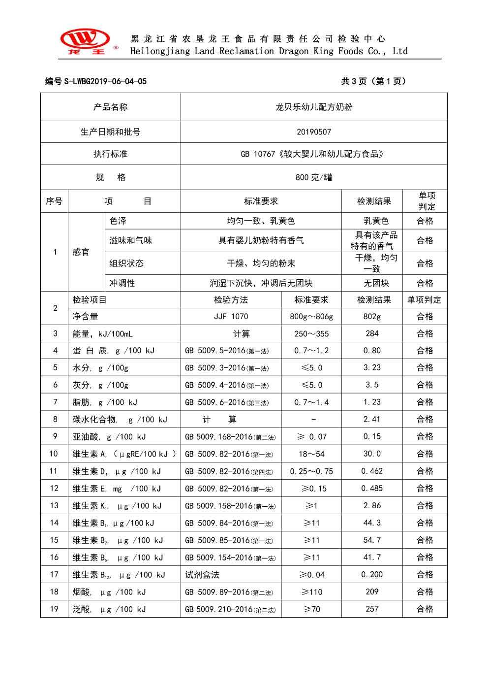 2019年(nián)6月(yuè)份龍貝樂(yuè)幼兒(ér)配方奶粉800克