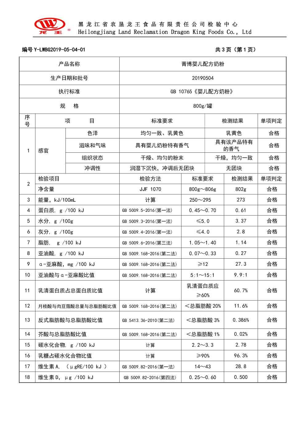 2019年(nián)5月(yuè)份菁博嬰兒(ér)配方奶粉800克