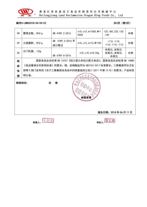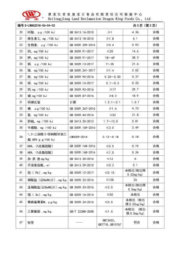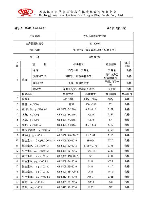 2018年(nián)6月(yuè)份龍貝樂(yuè)幼兒(ér)配方奶粉800克
