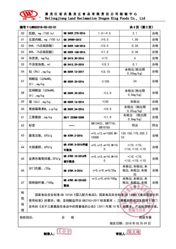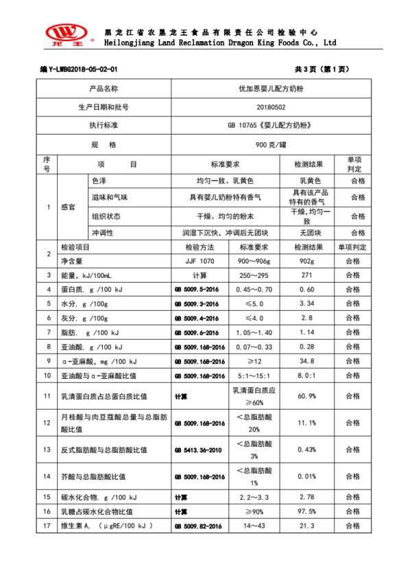 2018年(nián)5月(yuè)份優加恩嬰兒(ér)配方奶粉900克