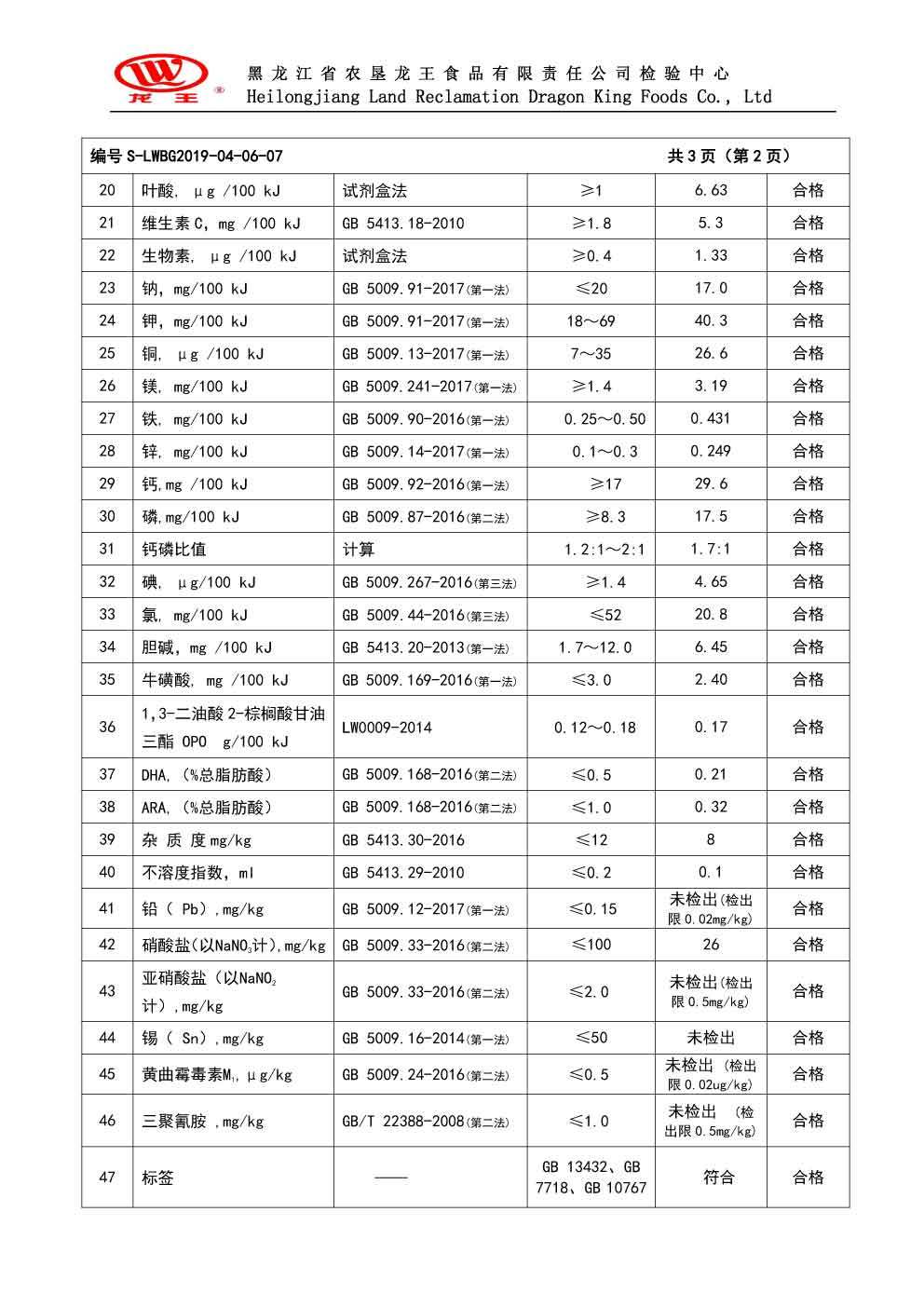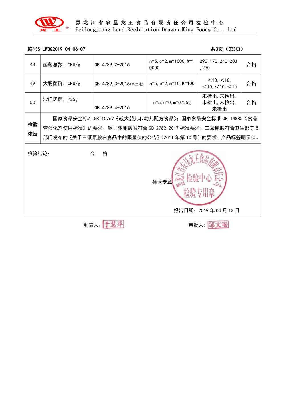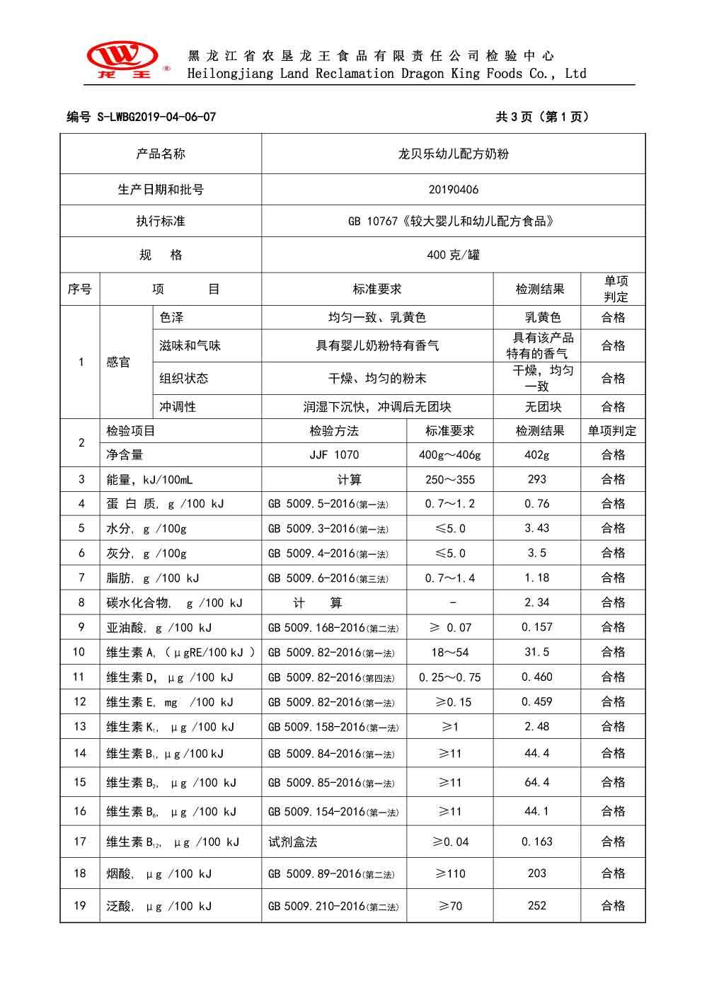 2019年(nián)4月(yuè)份龍貝樂(yuè)幼兒(ér)配方奶粉400克