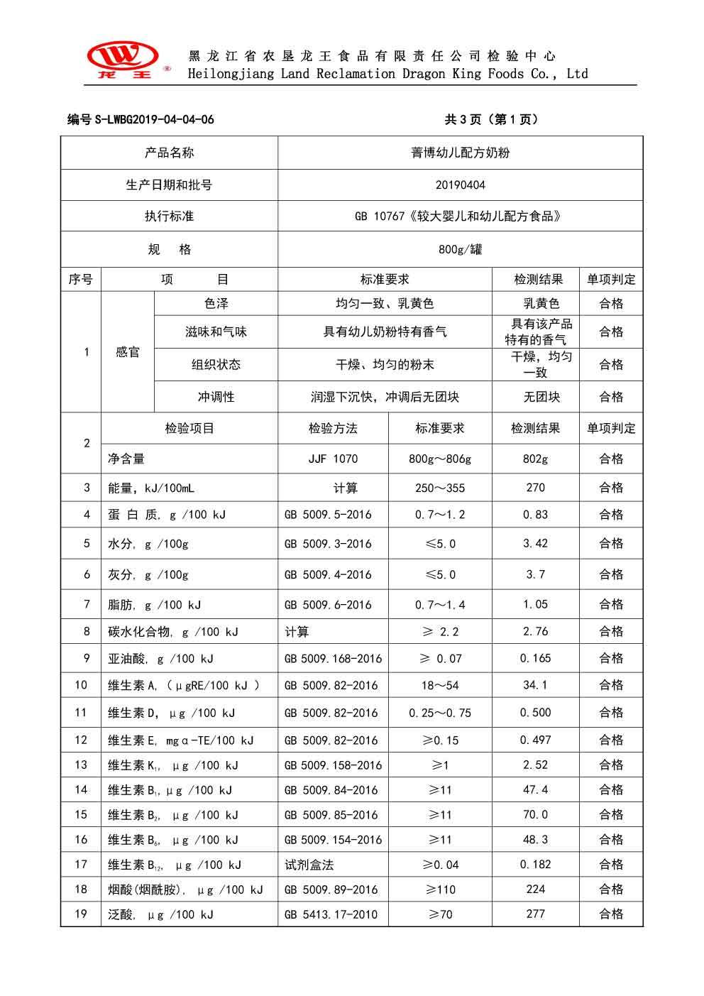 2019年(nián)4月(yuè)份菁博幼兒(ér)配方奶粉800克
