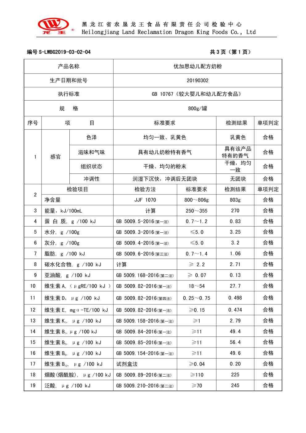 2019年(nián)3月(yuè)份優加恩幼兒(ér)配方奶粉800克