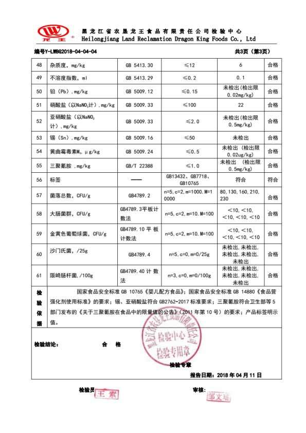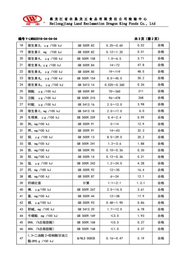 2018年(nián)4月(yuè)份龍貝樂(yuè)嬰兒(ér)配方奶粉100克