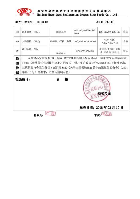 2018年(nián)3月(yuè)份龍貝樂(yuè)幼兒(ér)配方奶粉800克