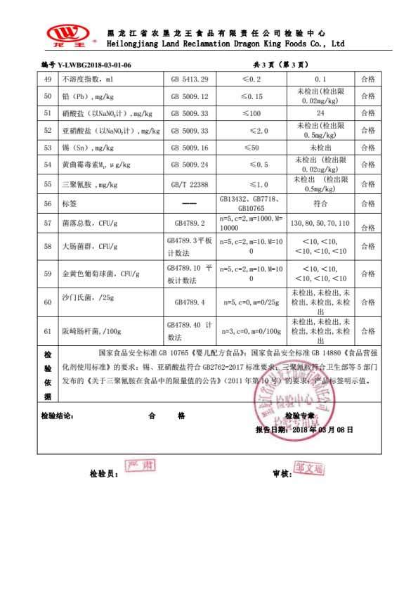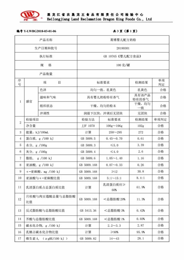 2018年(nián)3月(yuè)份菁博嬰兒(ér)配方奶粉100克