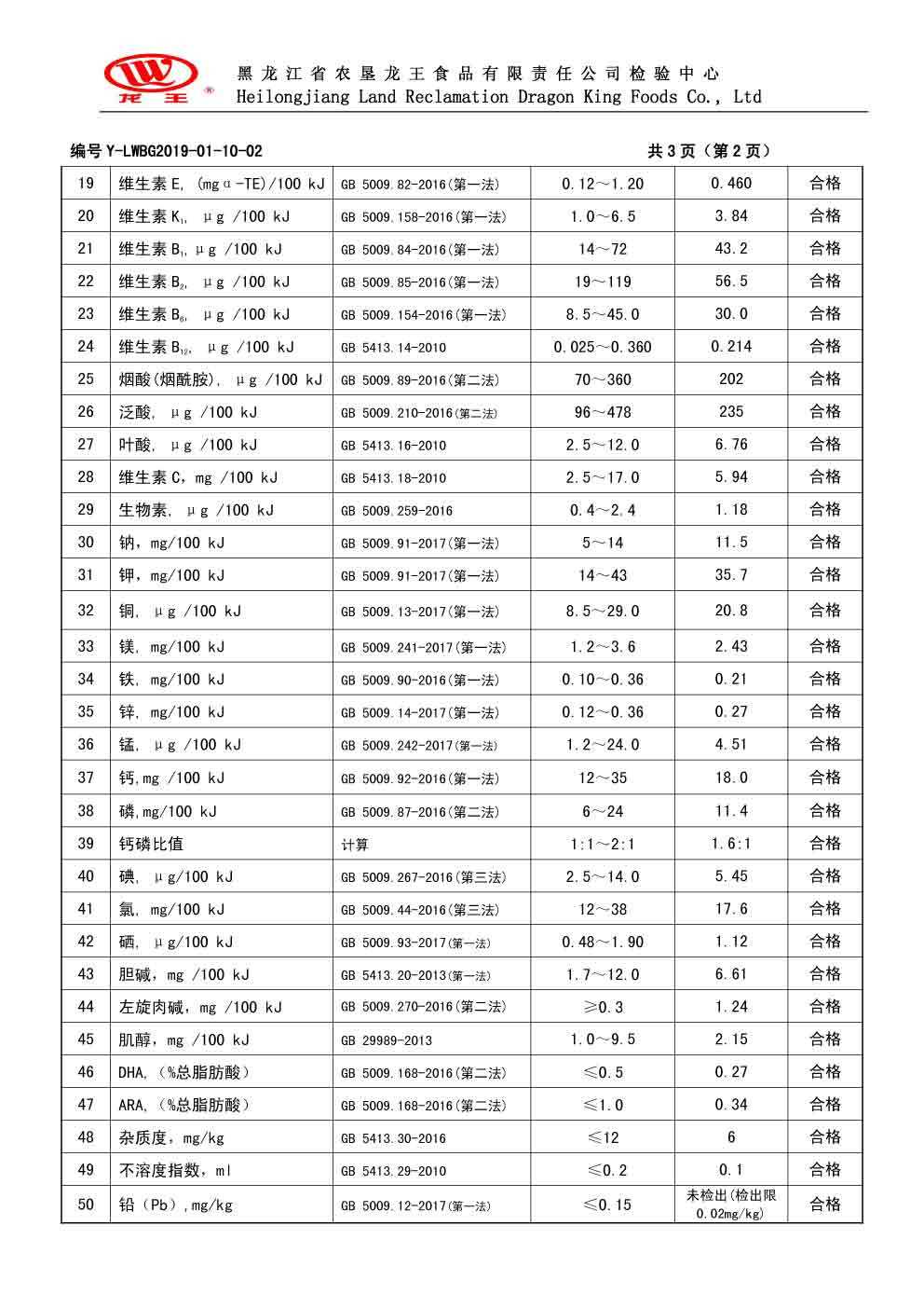 2019年(nián)01月(yuè)份菁博嬰兒(ér)配方奶粉100克