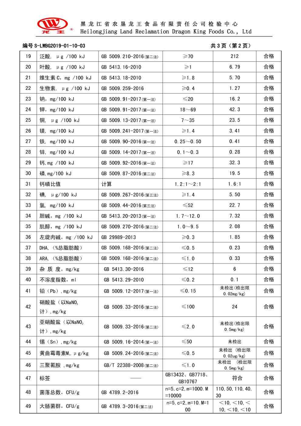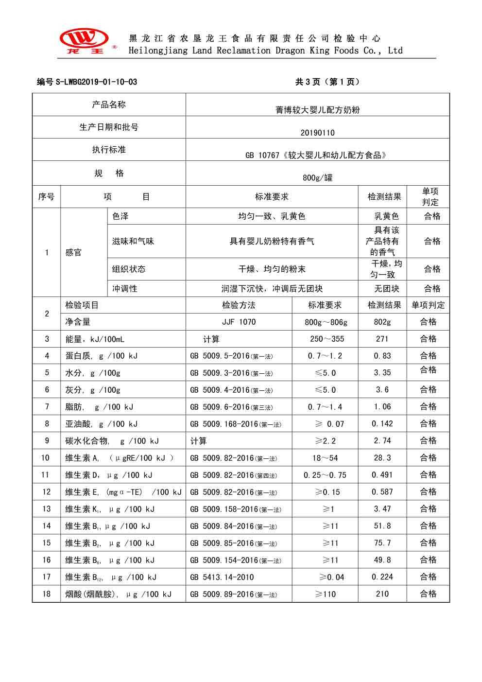 2019年(nián)01月(yuè)份菁博較大(dà)嬰兒(ér)配方奶粉800克