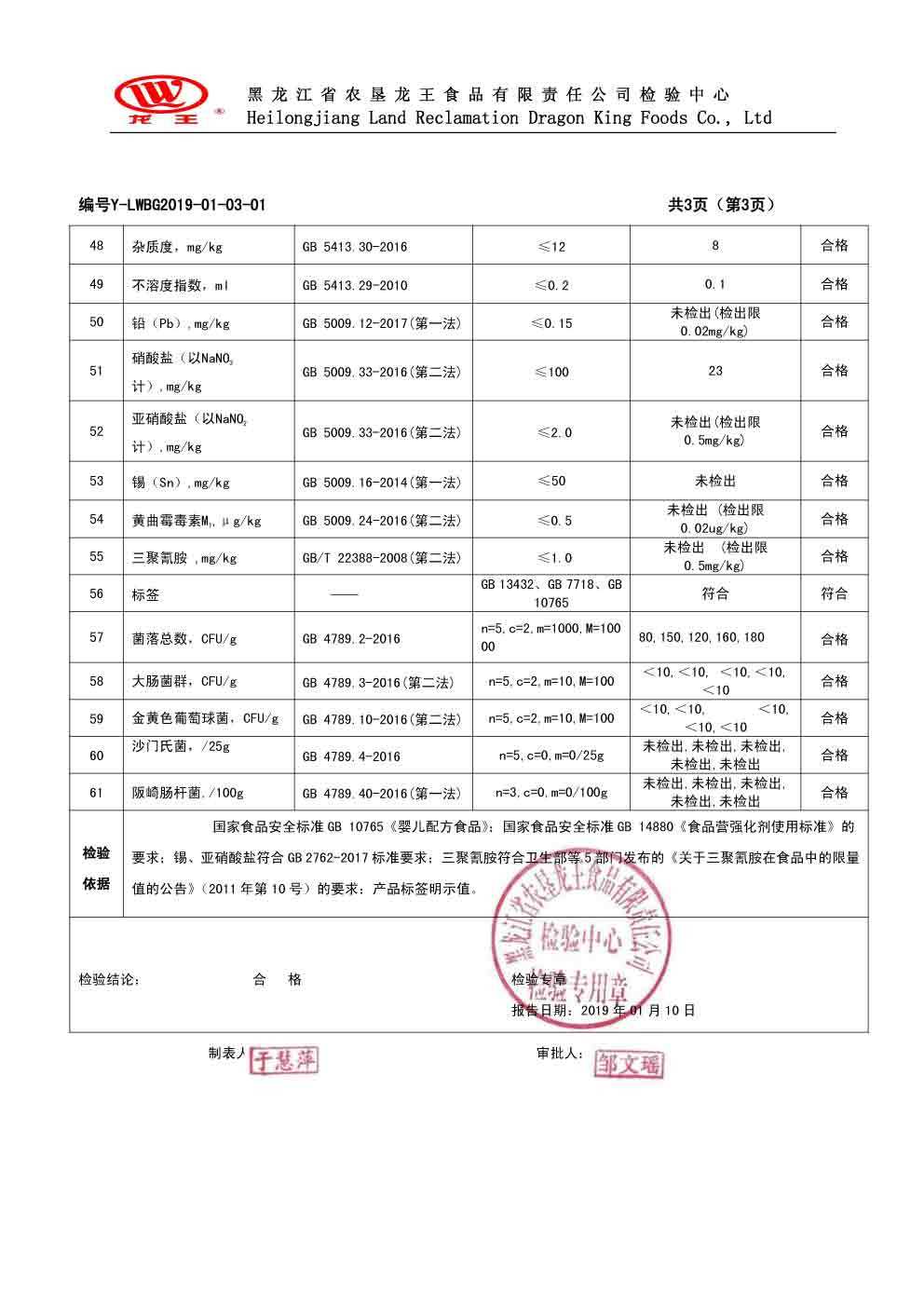 2019年(nián)01月(yuè)份龍貝樂(yuè)嬰兒(ér)配方奶粉800克