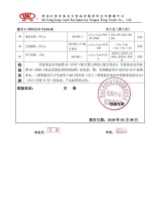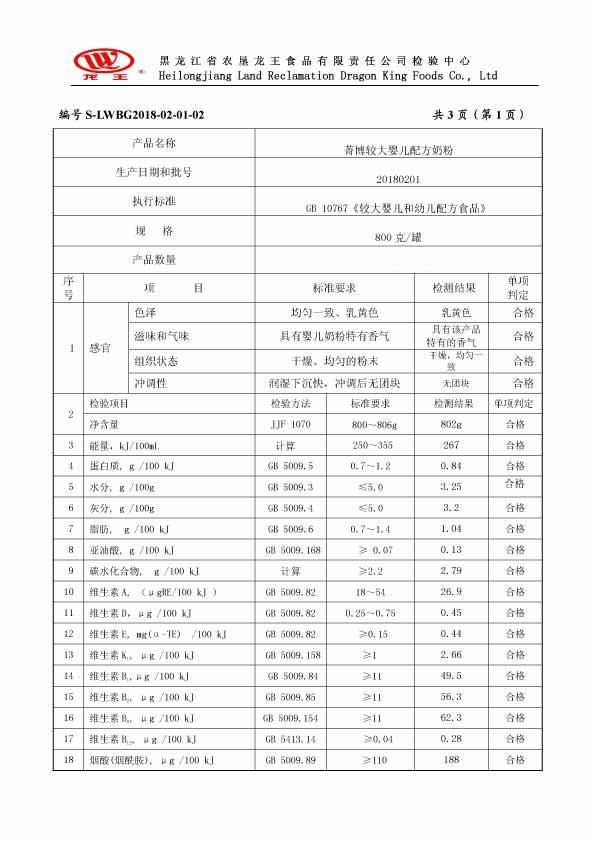 2018年(nián)02月(yuè)份菁博較大(dà)嬰兒(ér)配方奶粉800克