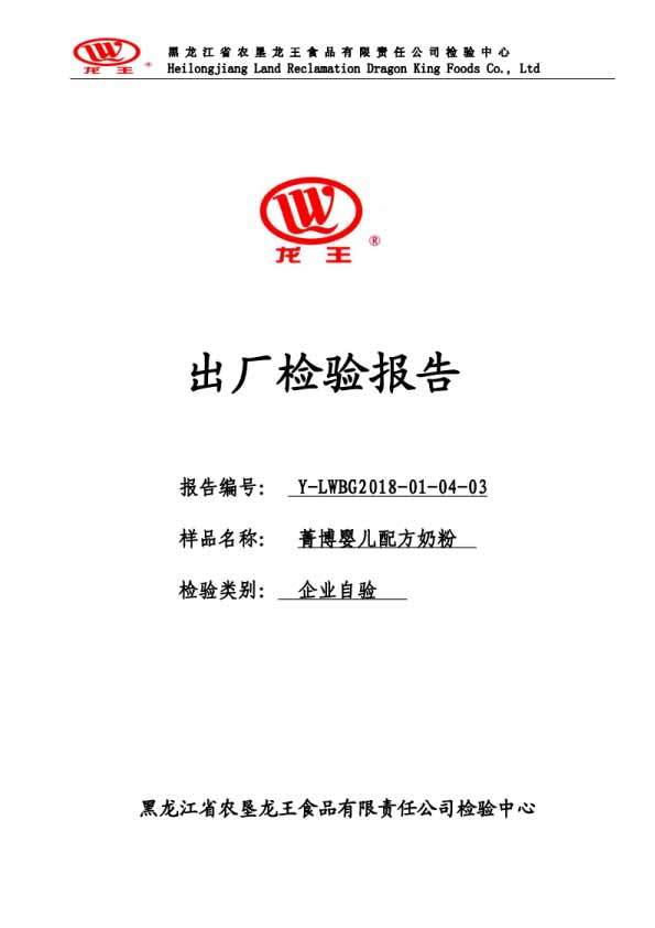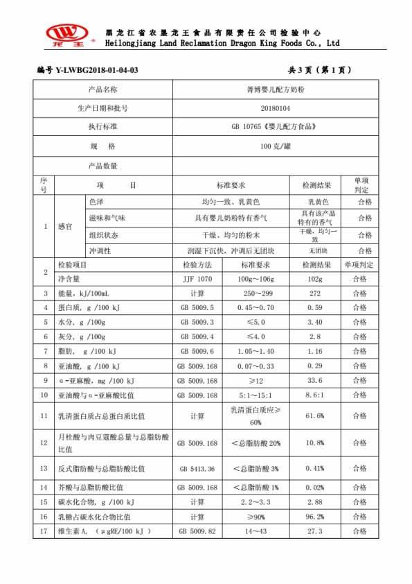2018年(nián)01月(yuè)份菁博嬰兒(ér)配方奶粉100克