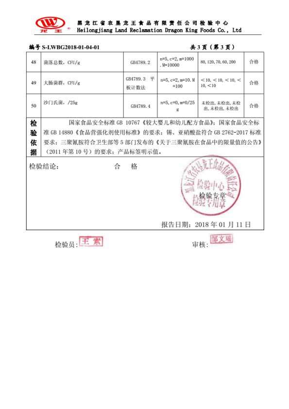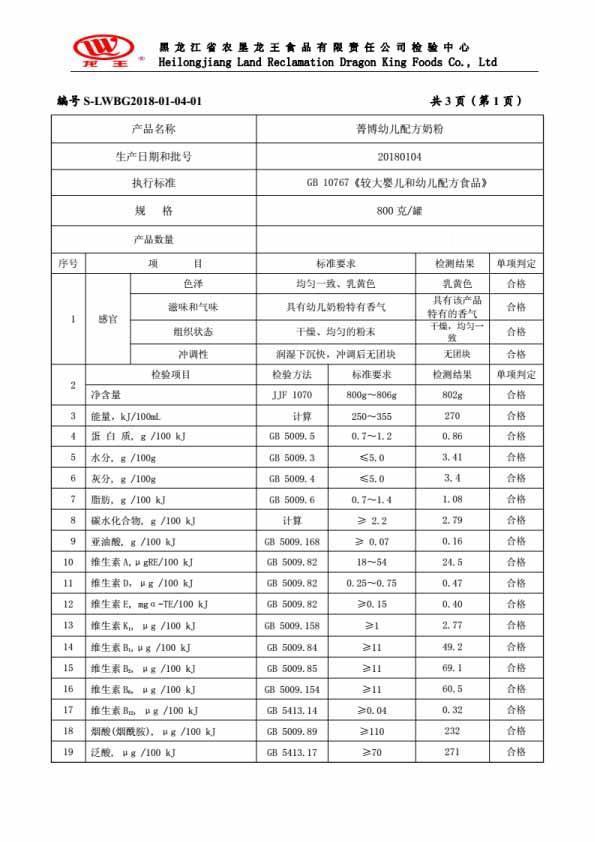 2018年(nián)01月(yuè)份菁博幼兒(ér)配方奶粉800克