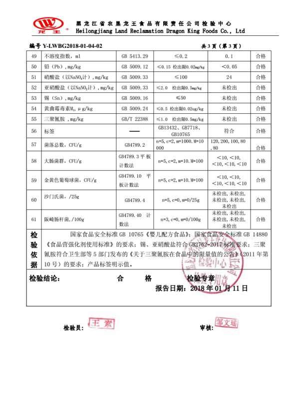 2018年(nián)01月(yuè)份菁博嬰兒(ér)配方奶粉800克