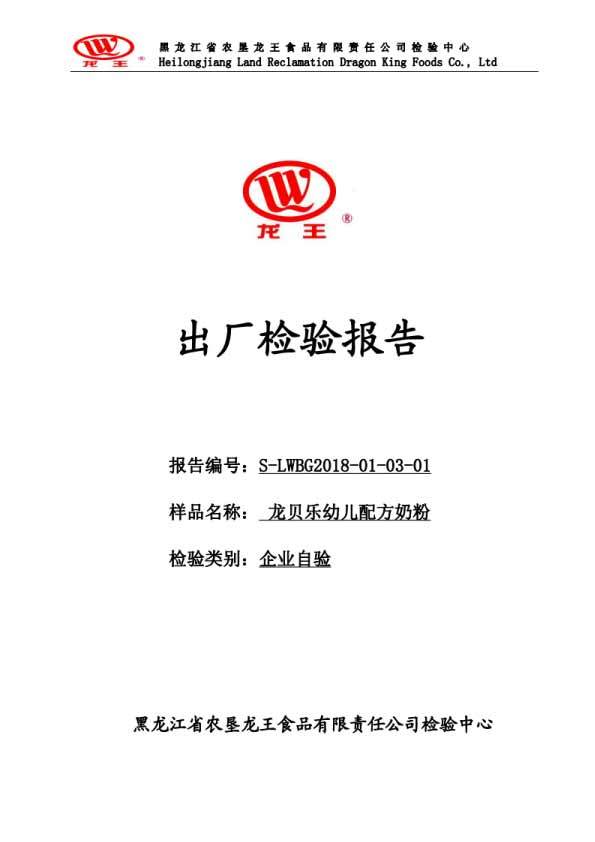2018年(nián)01月(yuè)份龍貝樂(yuè)幼兒(ér)配方奶粉800克